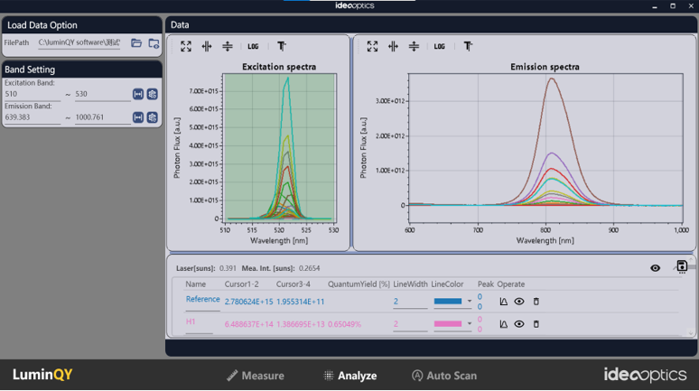 【总结】复享光学的荧光量子产率检测系统凭借其变可变光强测试功能,实现了不同太阳光强度下光致发光光谱(QFLS)的精准测量。这一功能能够逐层评估非器件态下的光学PCE、电荷传输特性和复合损失,为后续的工艺优化提供了强有力的科学依据和方向。